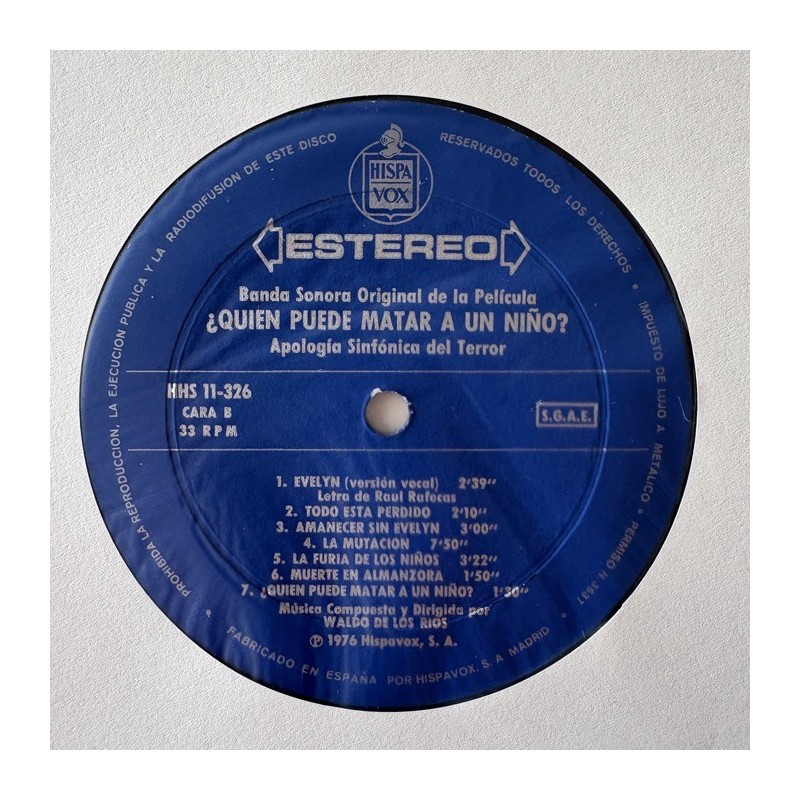 One of the rarest Spanish soundtracks, full of terror and drama samples… avant electronics in “ La Mutación” track,…Quoted as one of the 100 best soundtracks of all time...Original 1st pressing with flap intact…M- copy!