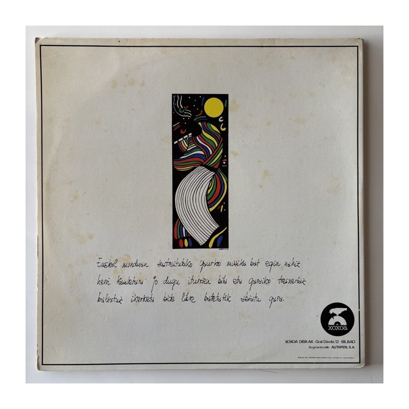 First album of the Spanish basque acidy folk prog band with beautiful female vocals...Laminated gatefold EX ( faint light brown stains on back) /. M- record , with rare insert