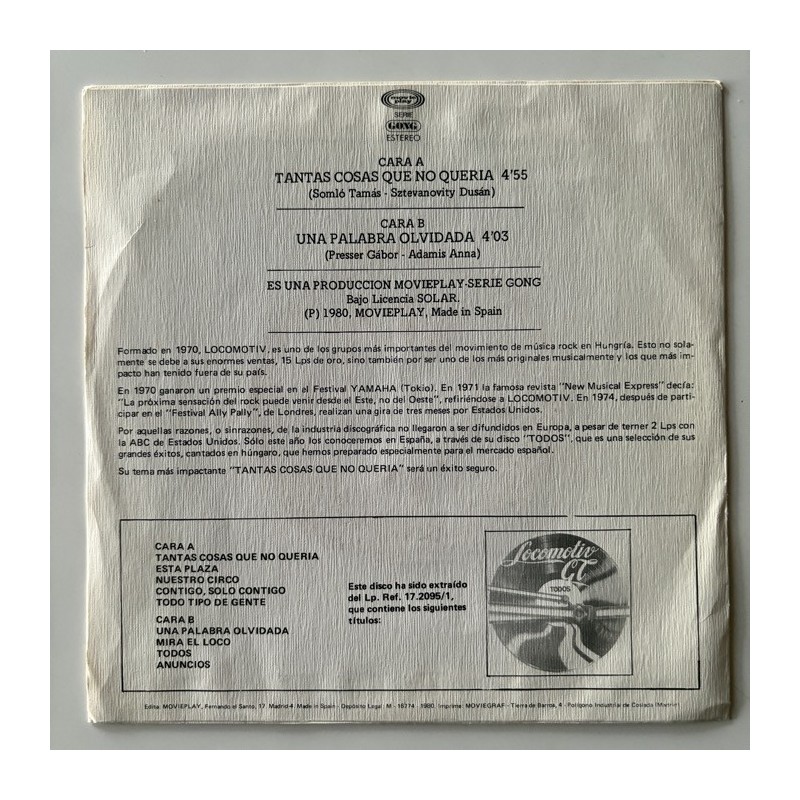 Movieplay Gong 02.2095/3 (Spain Single 7” 1980)