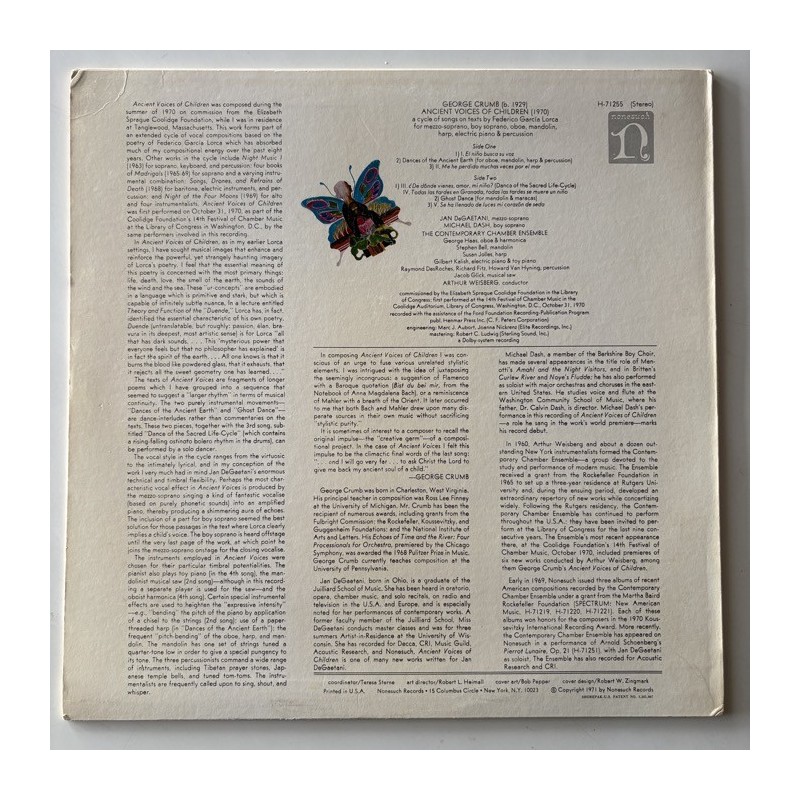 Avant classical experimental poetry, wordless voices, e-piano, on texts by Federico Garcia Lorca… US 1st pressing, with original company inner in top archive conditions