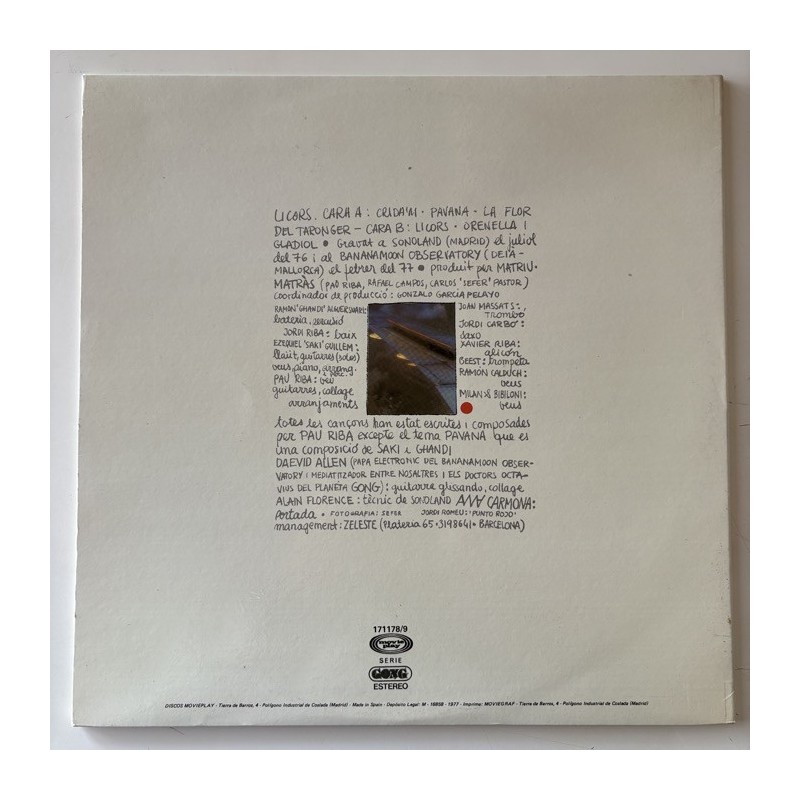 Another mediterranean folk psych prog artifact from the Spanish genius, featuring Daevid Allen from the Planet Gong and Milan & Bibiloni amongst others, recorded at Bananamoon Observatory ( Deià)…1st pressing laminated gatefold, TOP archive unplayed conditions, with the original hype sticker…